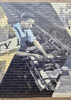 Today I rode along the Upfield bike and the road by Union Street was blocked so I did a detour along a bluestone lane to Manallack Street. I pass that way often without any time to stop and smell the roses. Today I was on holidays, my lunch date was cancelled and I had time to wander and wonder. So I came across some wonderful sepia street art reflecting the history of Brunswick. Then I wandered further and found some cheerful colourful street art including some on Saxon Street that was so infectious it had spread to the road. I wish I knew more about the history but all I can do is stand back, admire and immerse!