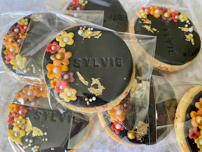 Sylvia had a very lowkey but enjoyable birthday this year. My mum dropped in with cakes and we had a special brunch and pizza for tea. And these gorgeous biscuits (cookies) were dropped off by a colleague who is an amazing baker.